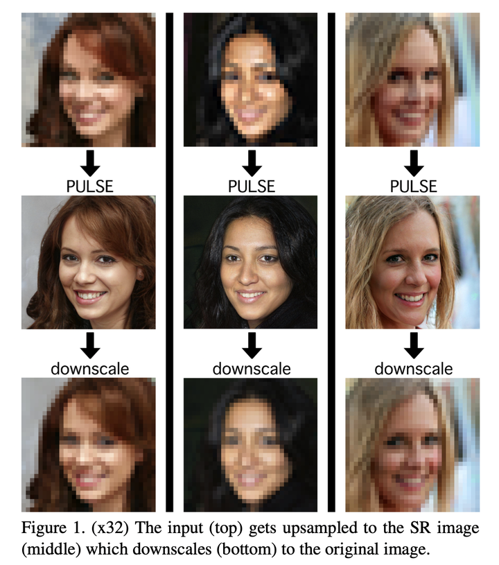PULSE: Self-Supervised Photo Upsampling via Latent Space Exploration of Generative Models
